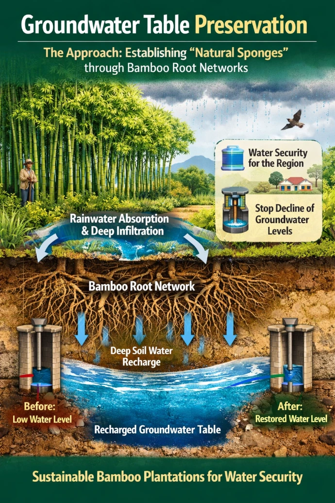 ● The Approach: Establishing "Natural Sponges" through bamboo root networks.
