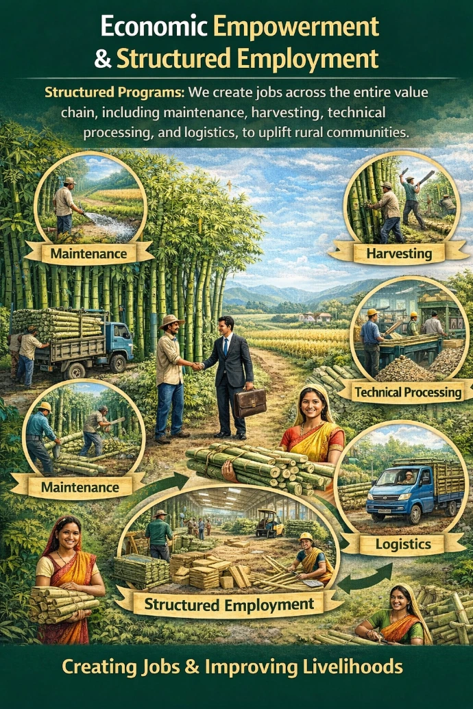 ●Structured Programs: We create jobs across the entire value chain, including maintenance, harvesting, technical processing, and logistics, to uplift rural communities.