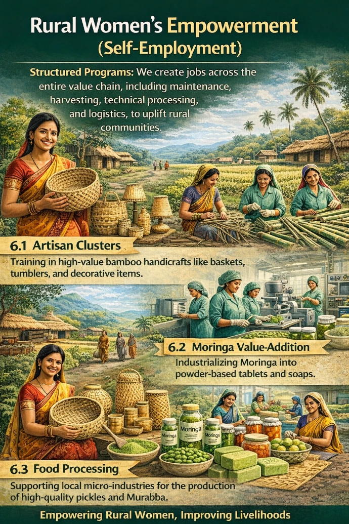 ● 6.1 Artisan Clusters: Training in high-value bamboo handicrafts like baskets, tumblers, and decorative items.